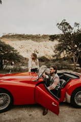 We found a cherry-red 1960 Triumph, polished to perfection, with just enough rumble in the engine to make your heart skip. It wasn’t just a prop—it was part of the story. We leaned against it, laughed beside it, and kissed in front of it as the sun dipped low behind us. That car didn’t just frame the moment—it elevated it.